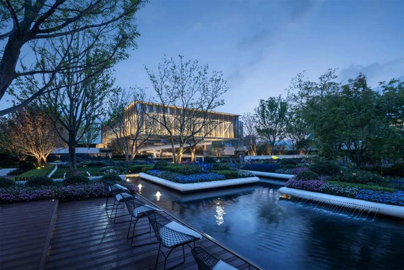 萬(wàn)科翡翠濱江借鑒了波士頓“建筑-公園-建筑-公園”的設(shè)計(jì)理念,以水為紐帶,貫穿全軸線,打造了一座“翡翠項(xiàng)鏈?zhǔn)剿豆珗@”。歸家禮儀軸以中軸線,設(shè)置了不同的水表情,如涌泉、水瀑、跳泉等,營(yíng)造出獨(dú)特的景觀效果。翡翠元素隨處可見(jiàn),景墻內(nèi)嵌入通透的翠色琉璃,陽(yáng)光下閃耀著翡翠的光澤。翡翠濱江以水為紐帶,營(yíng)造了獨(dú)特的景觀效果,業(yè)主可盡情享受瞰江的壯麗景色。