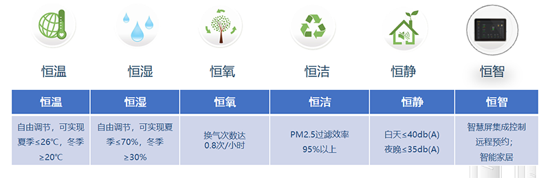 這三個(gè)項(xiàng)目均是以六恒(恒溫、恒濕、恒氧、恒潔、恒靜、恒智)技術(shù)為核心的綠色科技生態(tài)住宅,基于溫濕度獨(dú)立控制技術(shù),通過(guò)采用高效外圍擴(kuò)結(jié)構(gòu)、高效的設(shè)備系統(tǒng)、置換式新風(fēng)、智能控制等科技生態(tài)技術(shù),在室內(nèi)空氣品質(zhì)、溫濕度、聲、光等方面追求更高的舒適感受,達(dá)到綠色、健康、智慧的居住目的。
